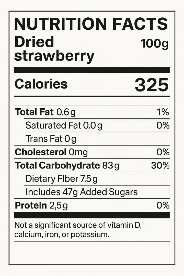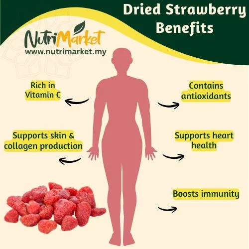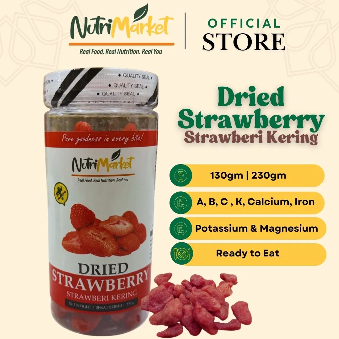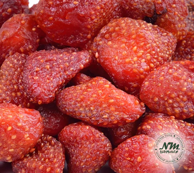 Sealed for lasting freshness and packed with care, NUTRI MARKET Dried Strawberries bring