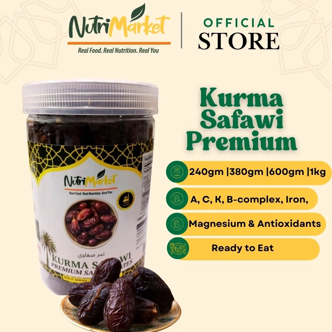 Sealed to preserve quality and flavour, NUTRI MARKET Kurma Safawi Premium Date bring you a naturally