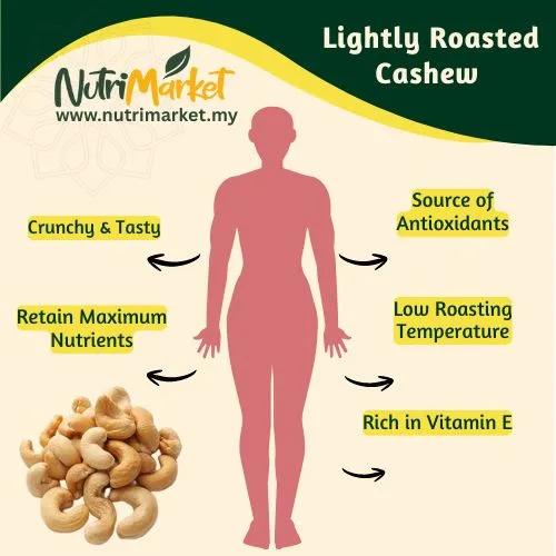 NUTRI MARKET’s Roasted Cashews are lightly roasted to bring out their rich, buttery flavour and crunchy texture. Naturally creamy and satisfying, they’re a delicious snack on their own or a tasty addition to your favourite recipes.
